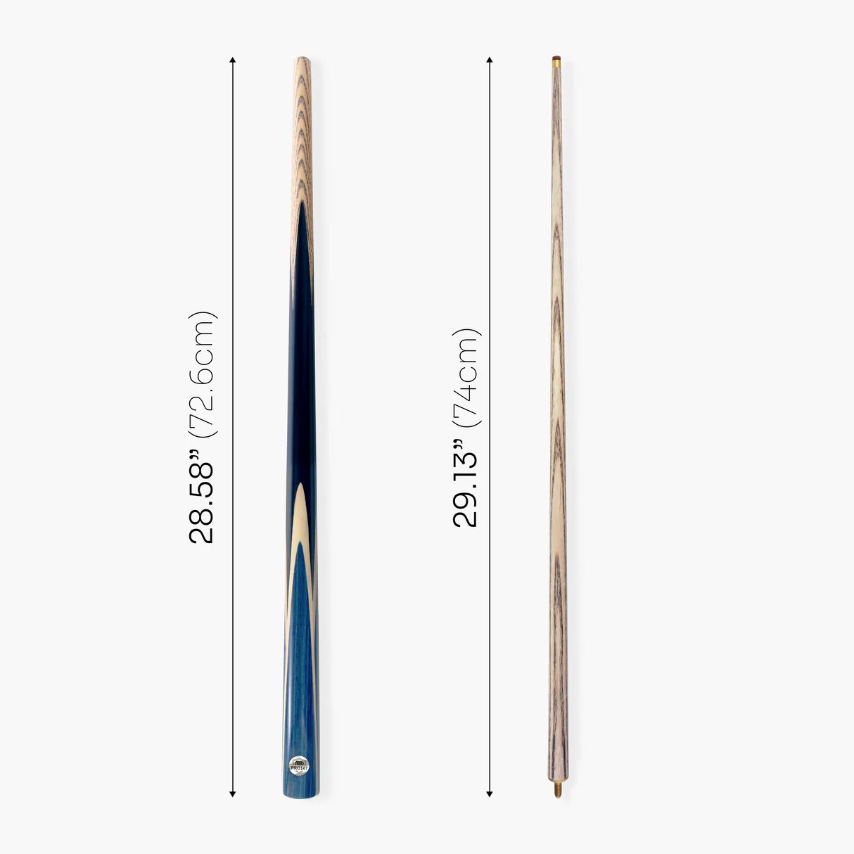 • 57” (145cm) long cue where the shaft is 72cm (including joint) and butt is 74cm