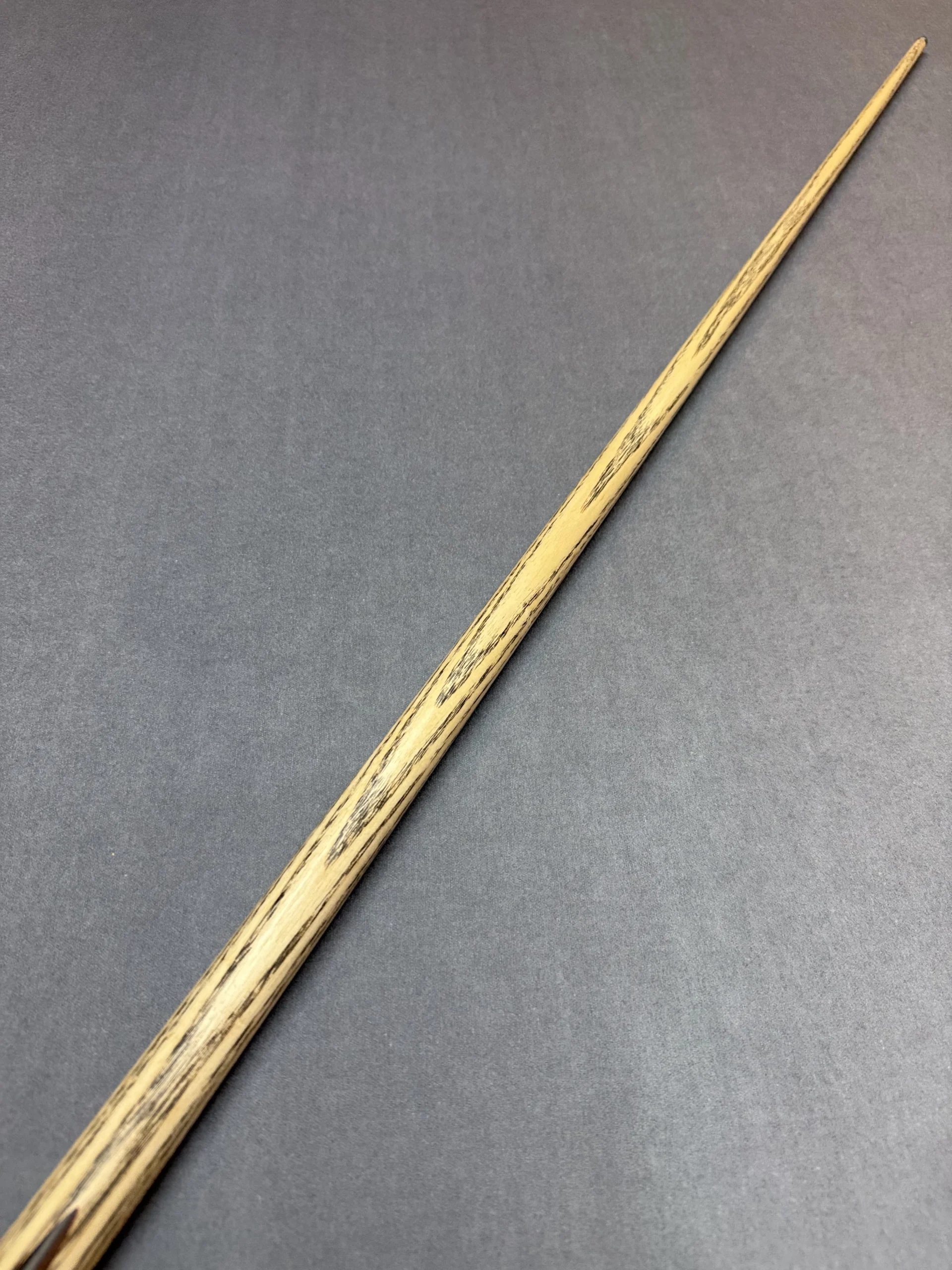 These cues are made the old traditional way, where the shaft runs the full length of the cue. Although most cues are made using shorter shafts these days, these are extended to full length before splices are added.