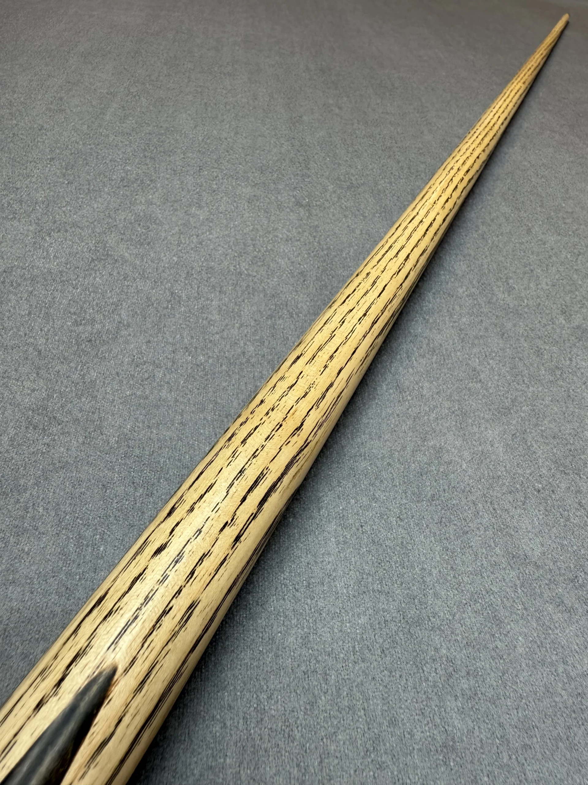 These cues are made the old traditional way, where the shaft runs the full length of the cue. Although most cues are made using shorter shafts these days, these are extended to full length before splices are added.
