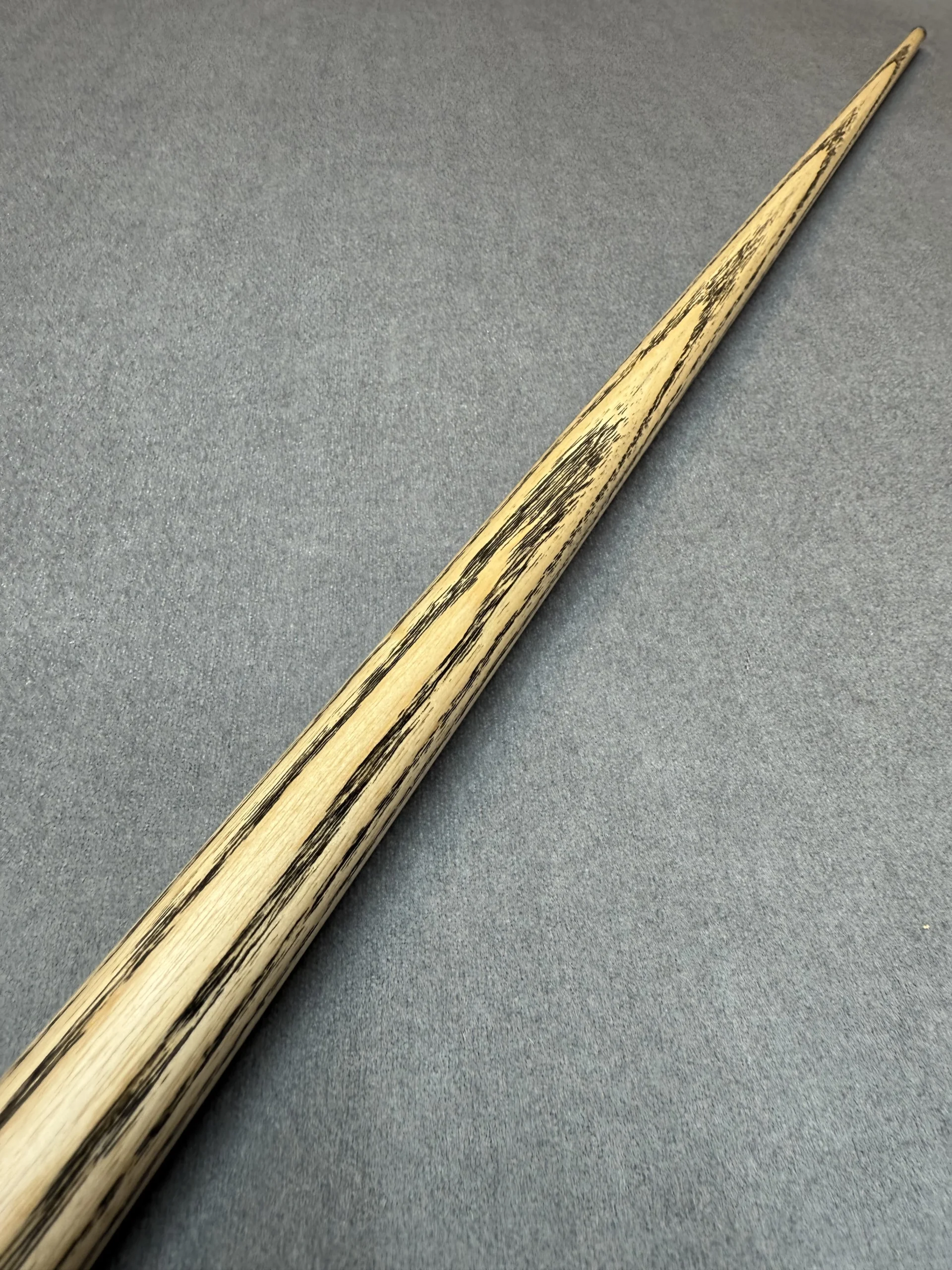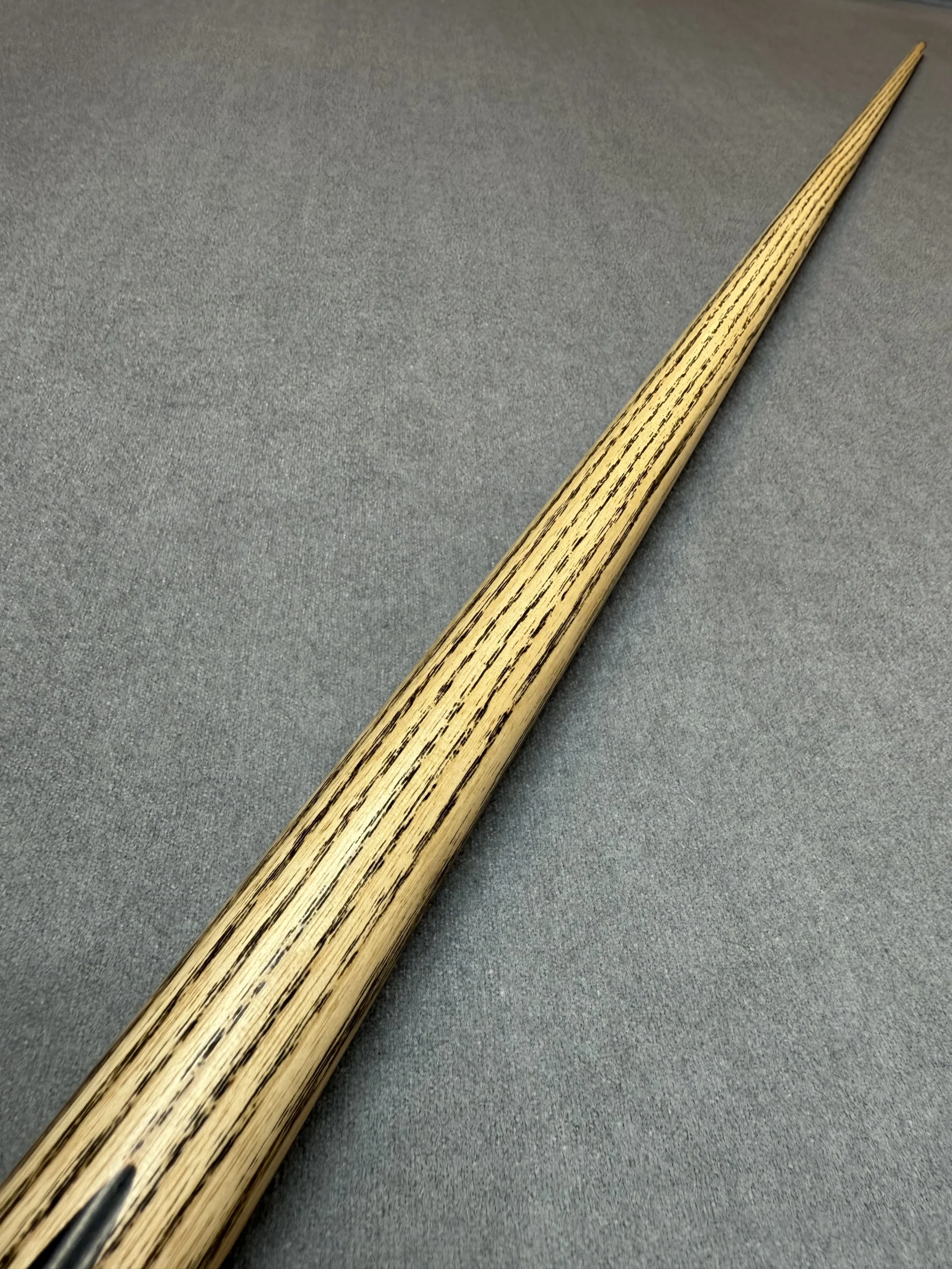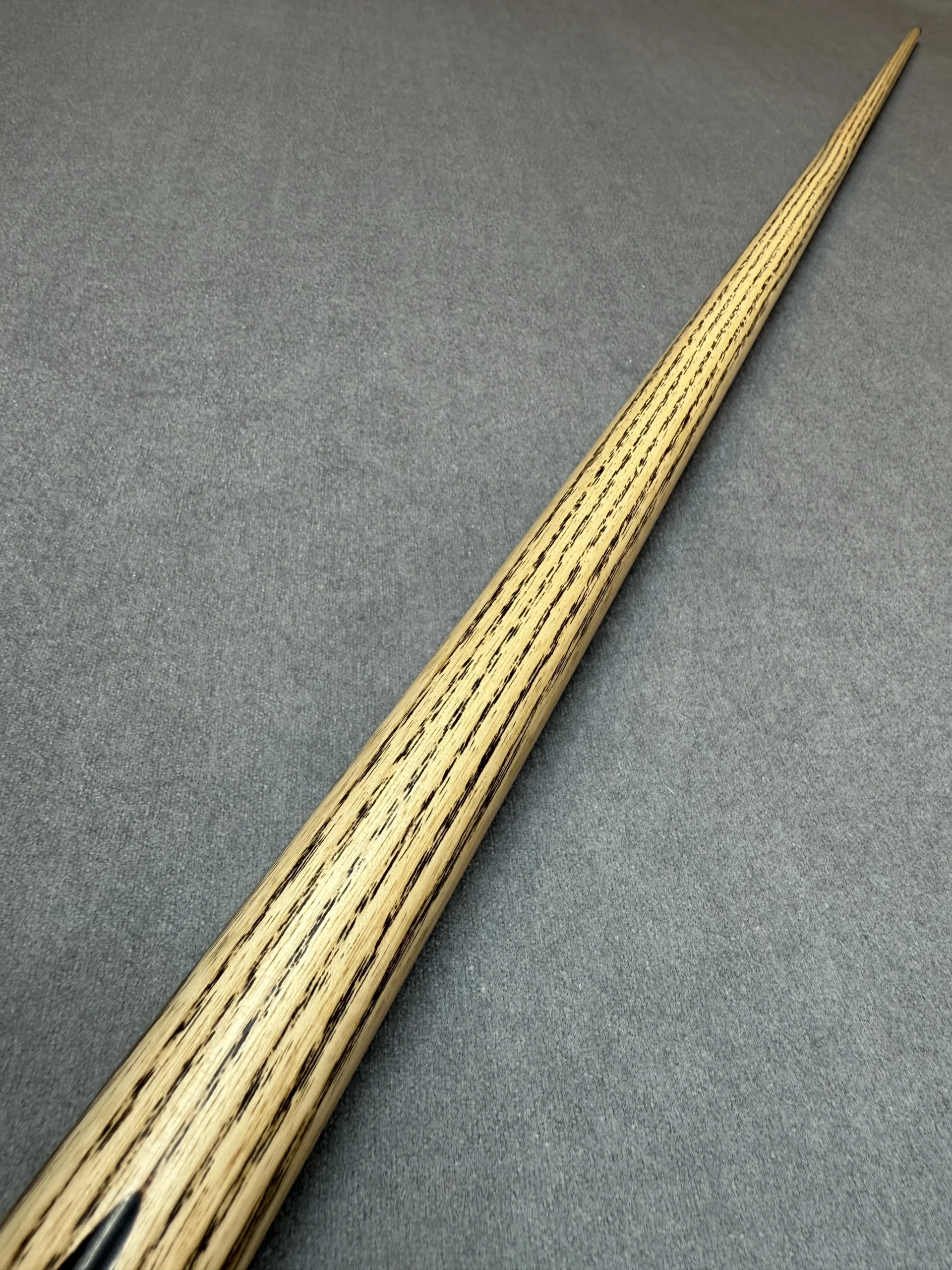 These cues are made the old traditional way, where the shaft runs the full length of the cue. Although most cues are made using shorter shafts these days, these are extended to full length before splices are added.