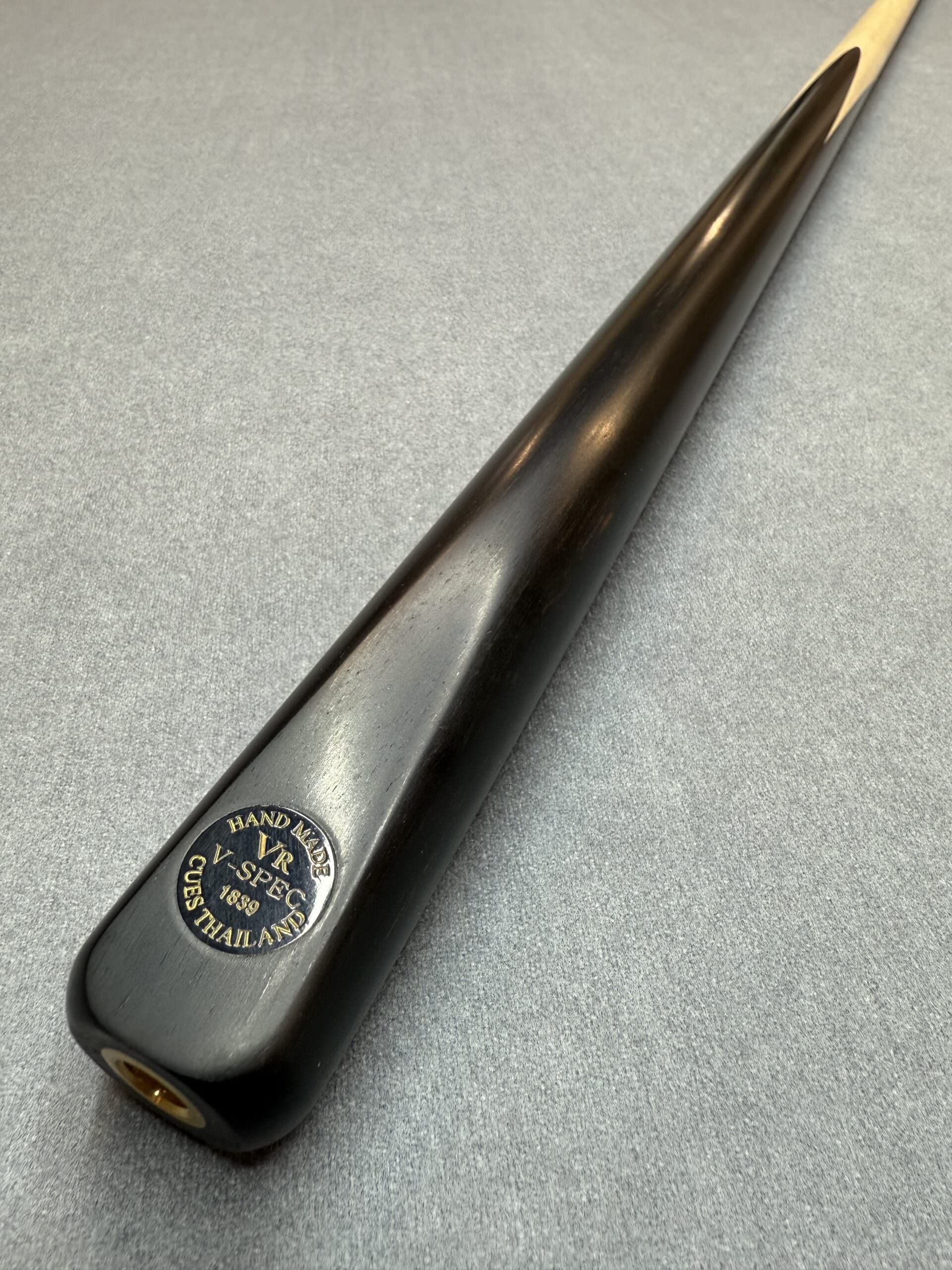 All VR Cues are fitted with an end joint for use with extensions (spiral thread). Each cue has a carefully selected shaft that includes straight side grain with forward-facing chevrons. Keen attention to detail ensures these all line up with the chamfer and badge. A blend of natural oils and waxes is applied to each range to finish the cue off.