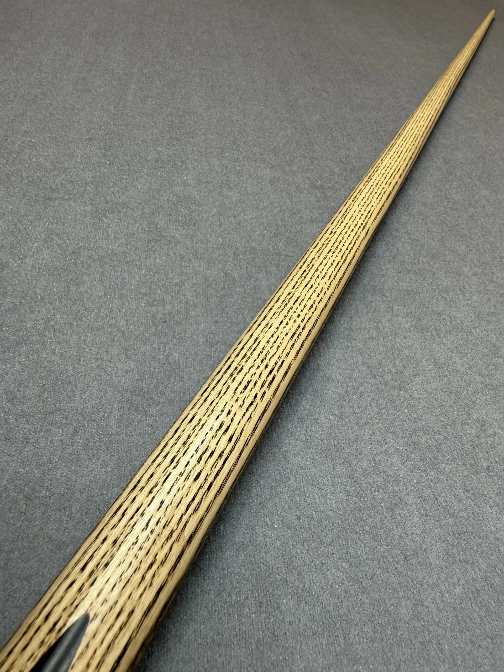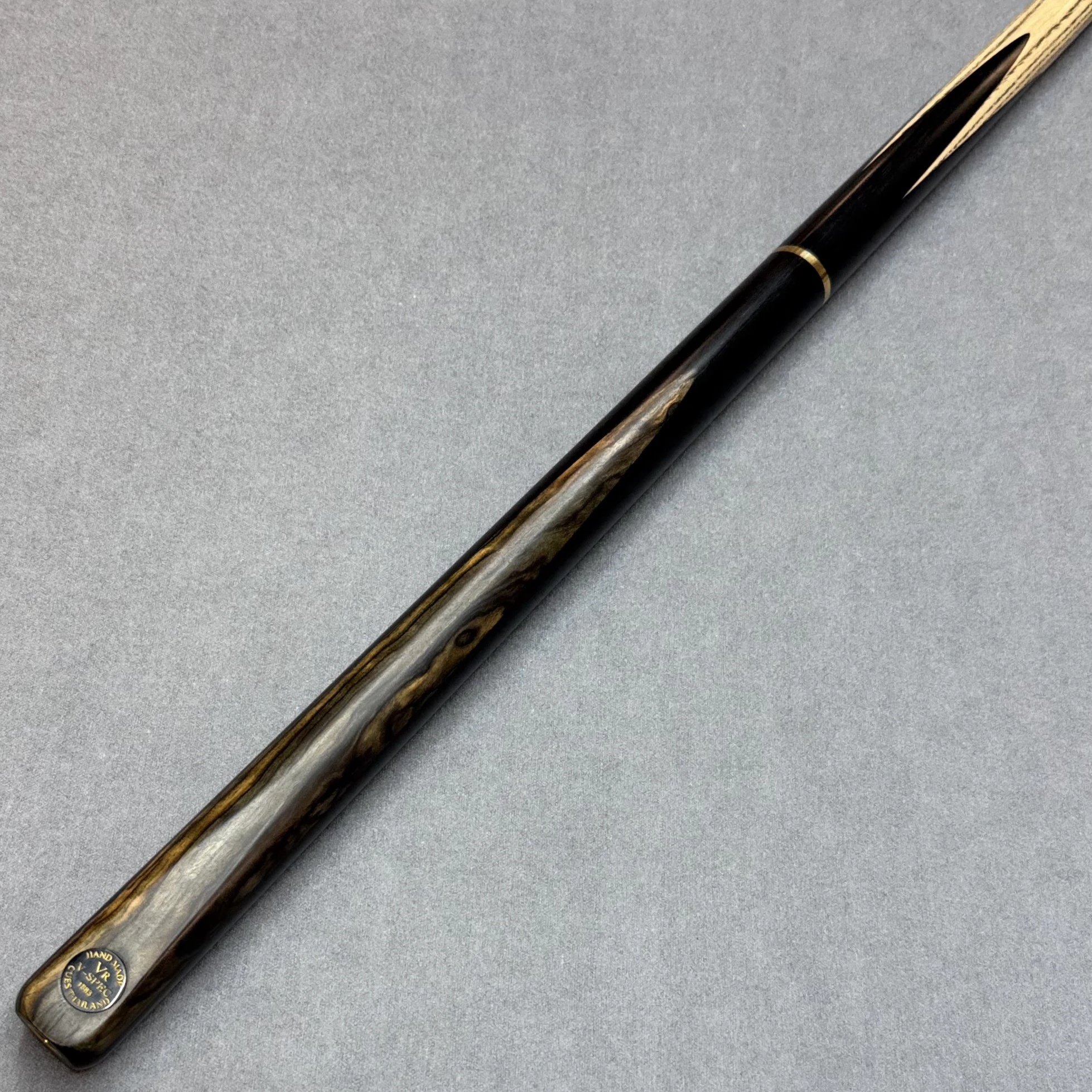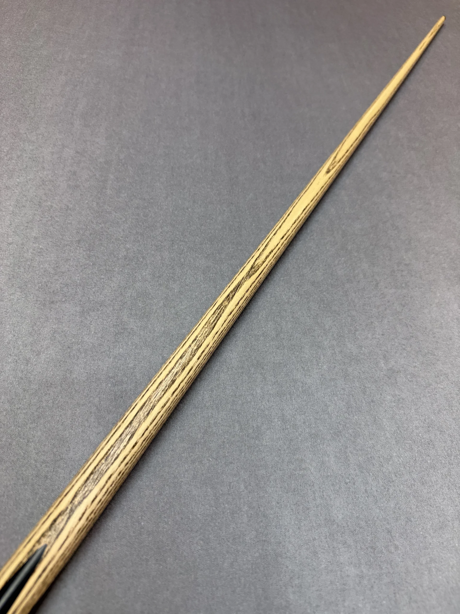These cues are made the old traditional way, where the shaft runs the full length of the cue. Although most cues are made using shorter shafts these days, these are extended to full length before splices are added.