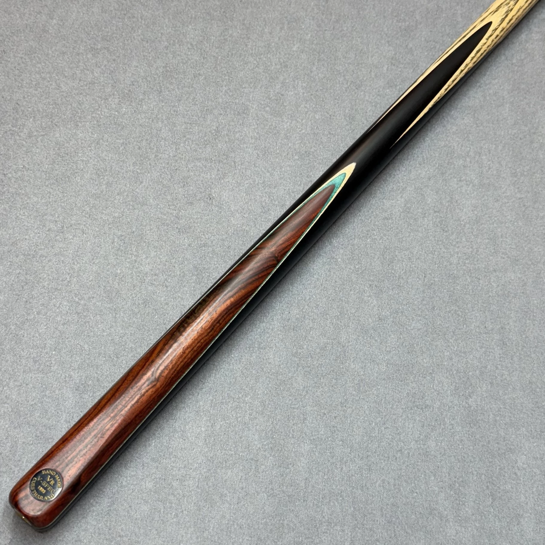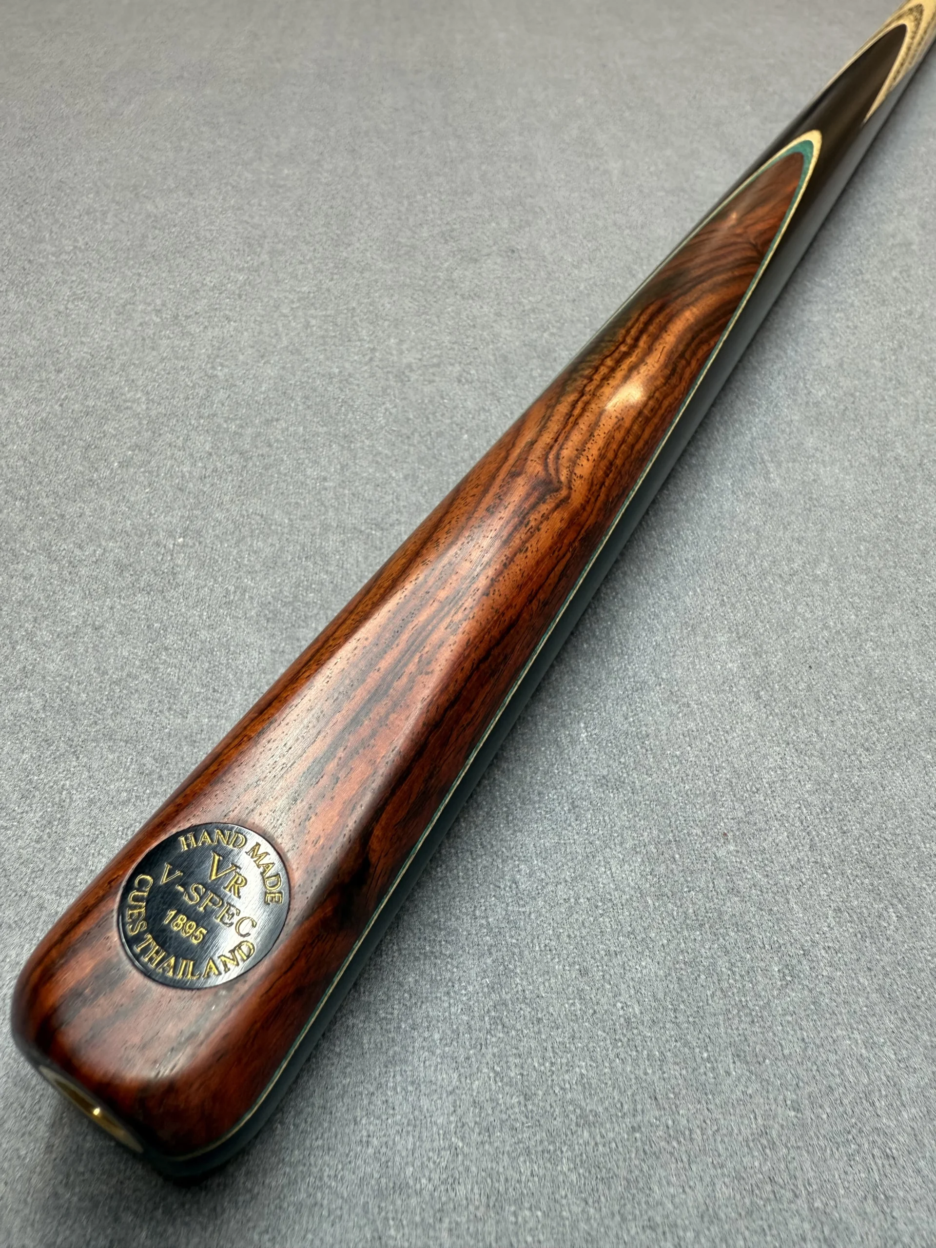 All VR Cues are fitted with an end joint for use with extensions (spiral thread). Each cue has a carefully selected shaft that includes straight side grain with forward-facing chevrons. Keen attention to detail ensures these all line up with the chamfer and badge. A blend of natural oils and waxes is applied to each range to finish the cue off.
