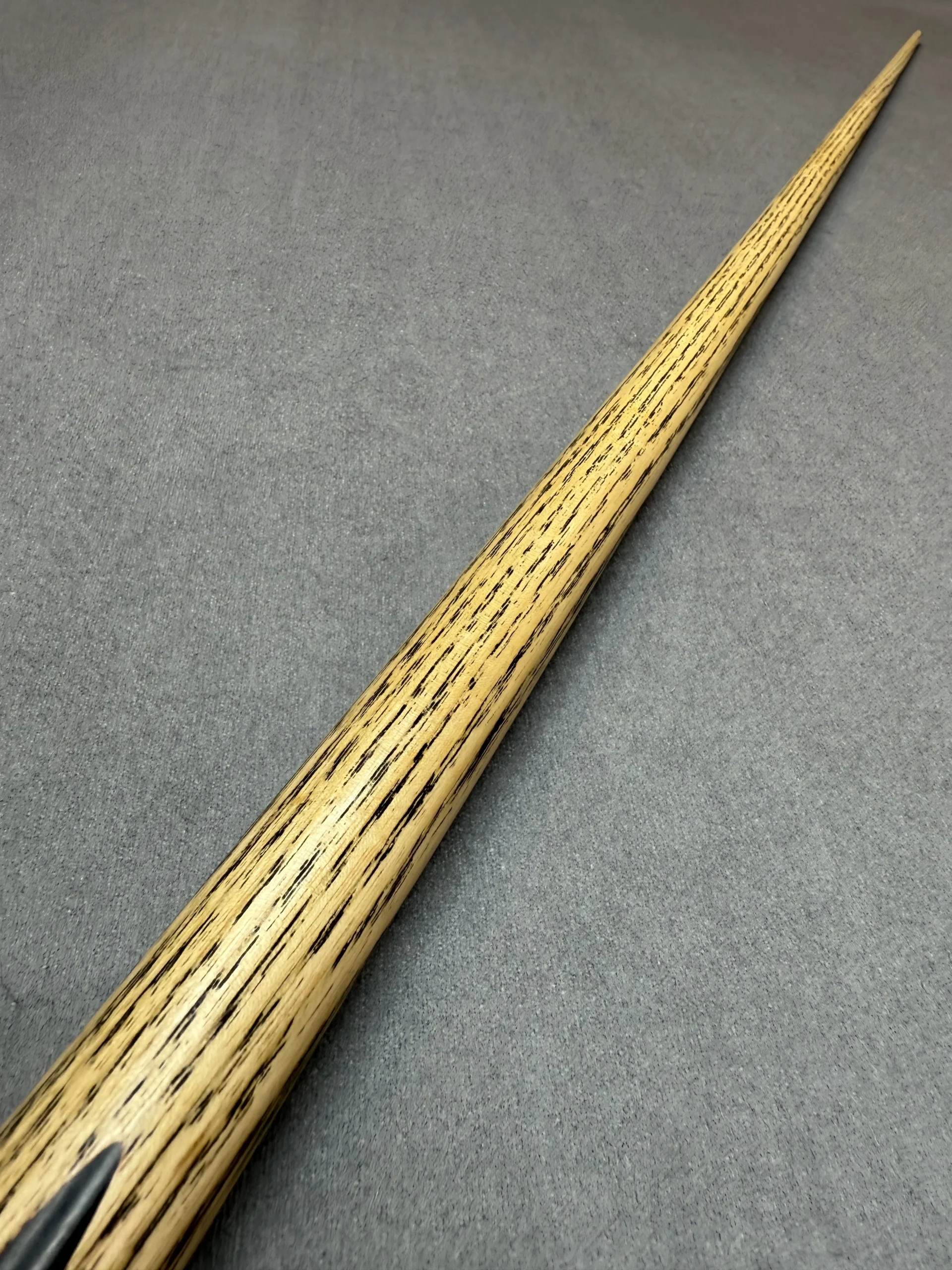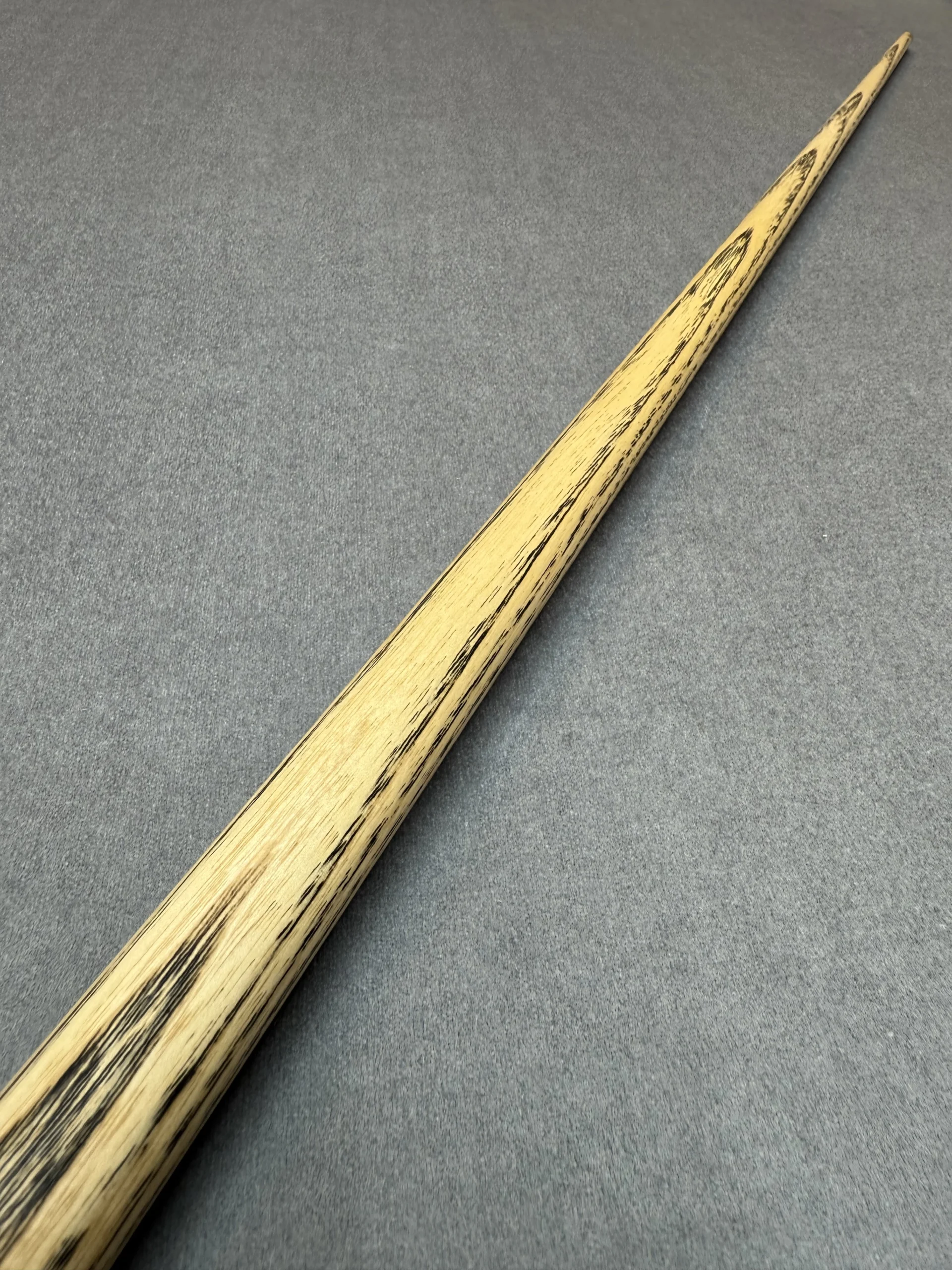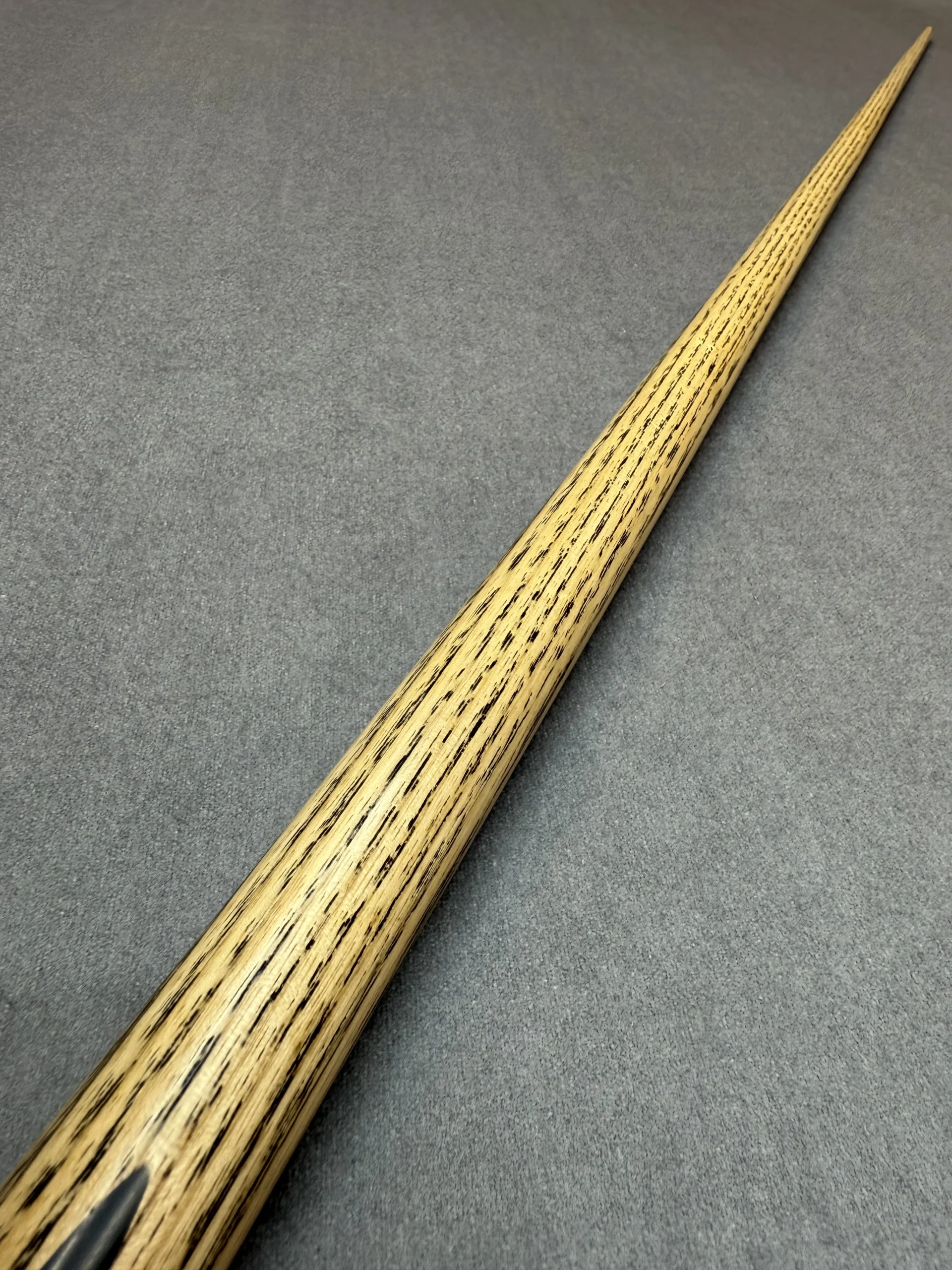 These cues are made the old traditional way, where the shaft runs the full length of the cue. Although most cues are made using shorter shafts these days, these are extended to full length before splices are added.