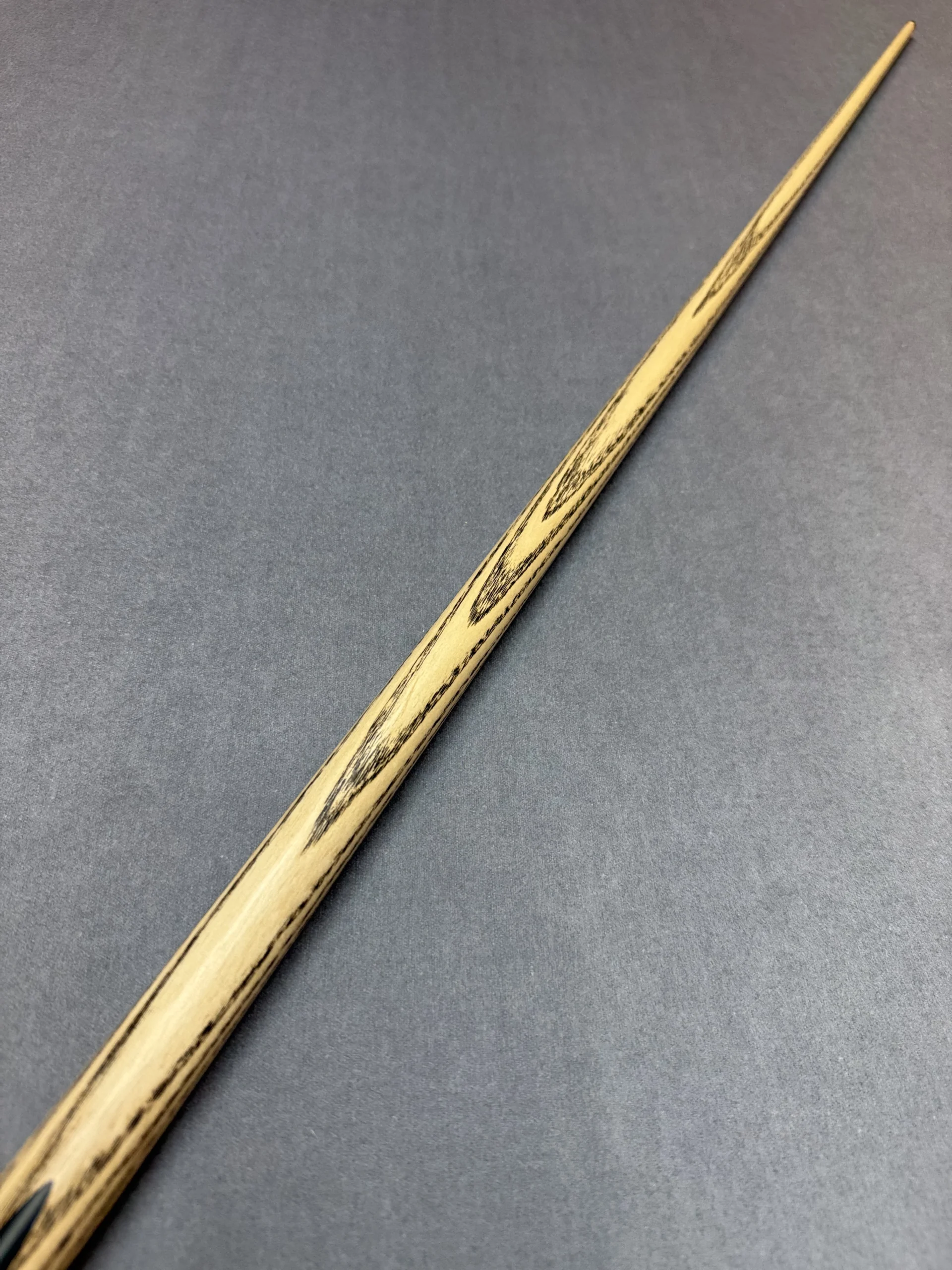 These cues are made the old traditional way, where the shaft runs the full length of the cue. Although most cues are made using shorter shafts these days, these are extended to full length before splices are added.
