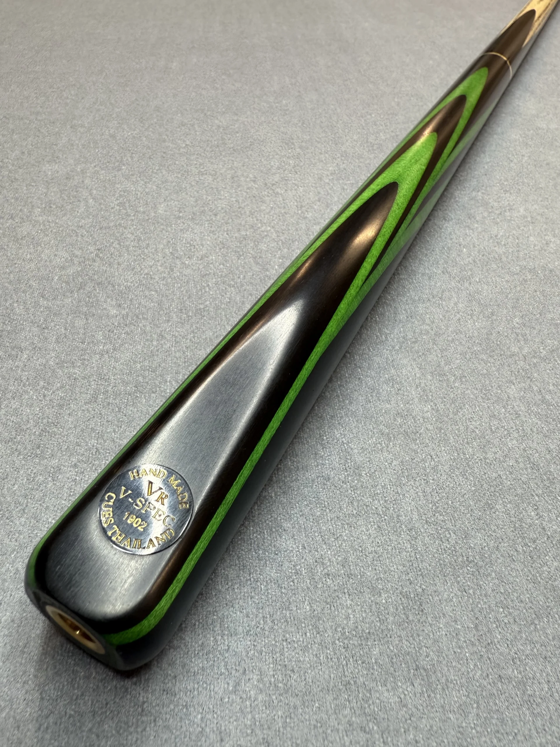 All VR Cues are fitted with an end joint for use with extensions (spiral thread). Each cue has a carefully selected shaft that includes straight side grain with forward-facing chevrons. Keen attention to detail ensures these all line up with the chamfer and badge. A blend of natural oils and waxes is applied to each range to finish the cue off.