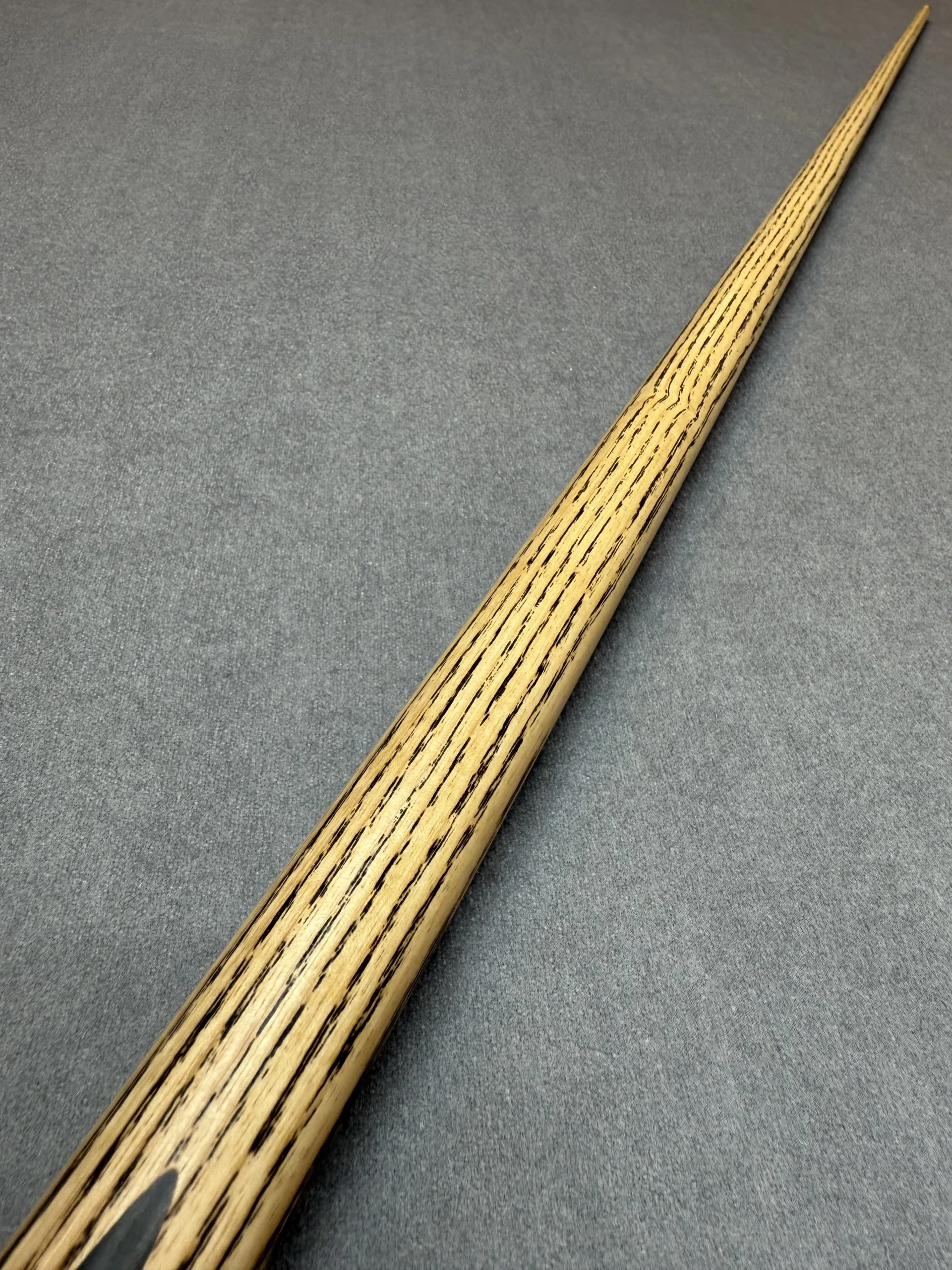 These cues are made the old traditional way, where the shaft runs the full length of the cue. Although most cues are made using shorter shafts these days, these are extended to full length before splices are added.