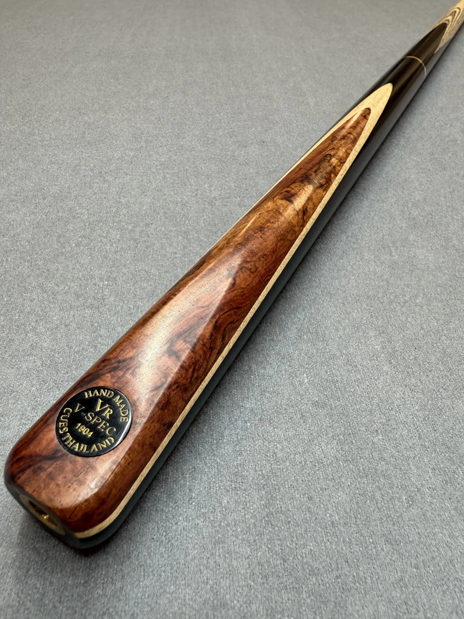 All VR Cues are fitted with an end joint for use with extensions (spiral thread). Each cue has a carefully selected shaft that includes straight side grain with forward-facing chevrons. Keen attention to detail ensures these all line up with the chamfer and badge. A blend of natural oils and waxes is applied to each range to finish the cue off.