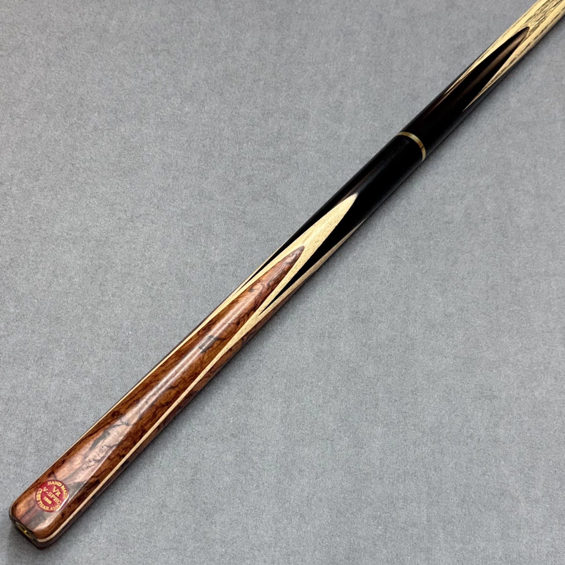 These cues are made the old traditional way, where the shaft runs the full length of the cue. Although most cues are made using shorter shafts these days, these are extended to full length before splices are added.